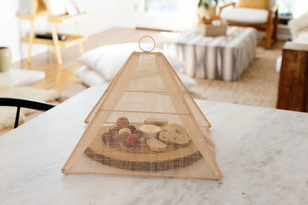 This elegant food cover will keep bugs out while adding a stylish touch to your dining table and/or kitchen. It's perfect for the outdoors. It has a unique and beautiful pentagonal shape. It's also foldable so you can take it with you when camping.